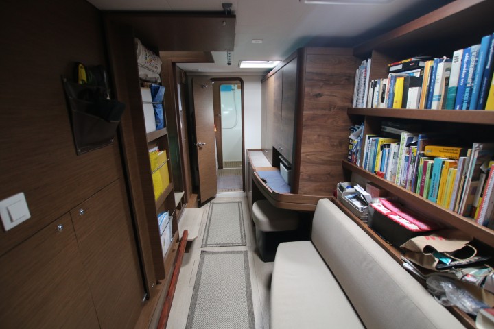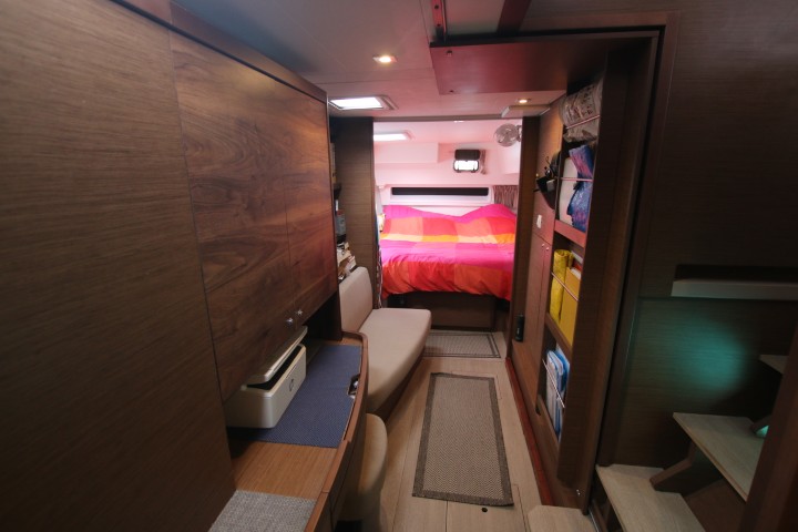 - Eigner-Schlafraum kann mit einem Wärmevorhang abgeteilt werden, ein kleines Klimagerät sorgt bei unangenehmen Bedingungen für trockene, angenehm kühle Luft. Bei extremer Kälte kann dieser Bereich auch auf angenehme Temperaturen geheizt werden.
