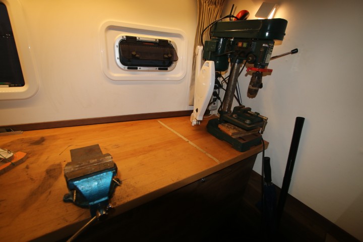 - Werkbank mit variablem Schraubstock und Ständerbohrmaschine